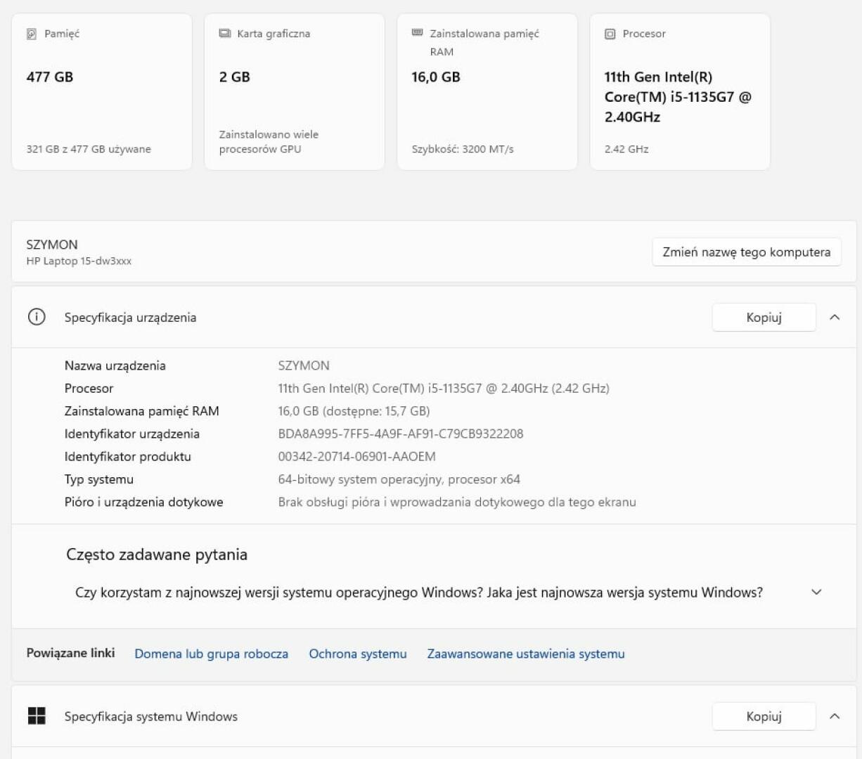 Sprzedam używany laptop Hp z serii 15 dw. Laptop w bardzo dobrym stanie. Parametry na zdjęciach. Sprzęt w pełni sprawny. Oryginalna ładowarka.