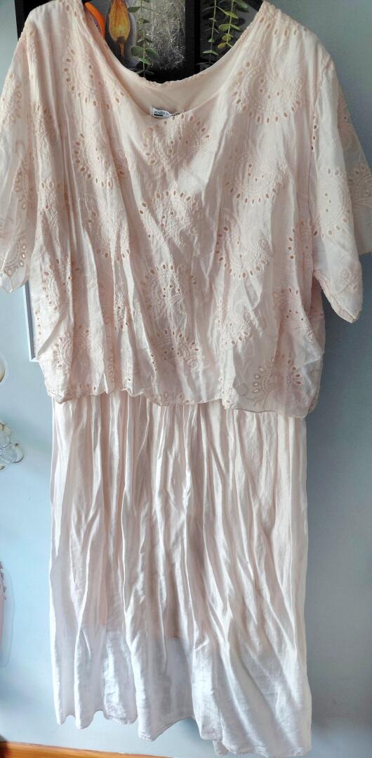 Nowa sukienka na komunie i inna imprezke gora azurkowa luźna nie przyszyta do sukienki ma podszewkę pudrowy róż na xl dl 120 cm cena 50 zł