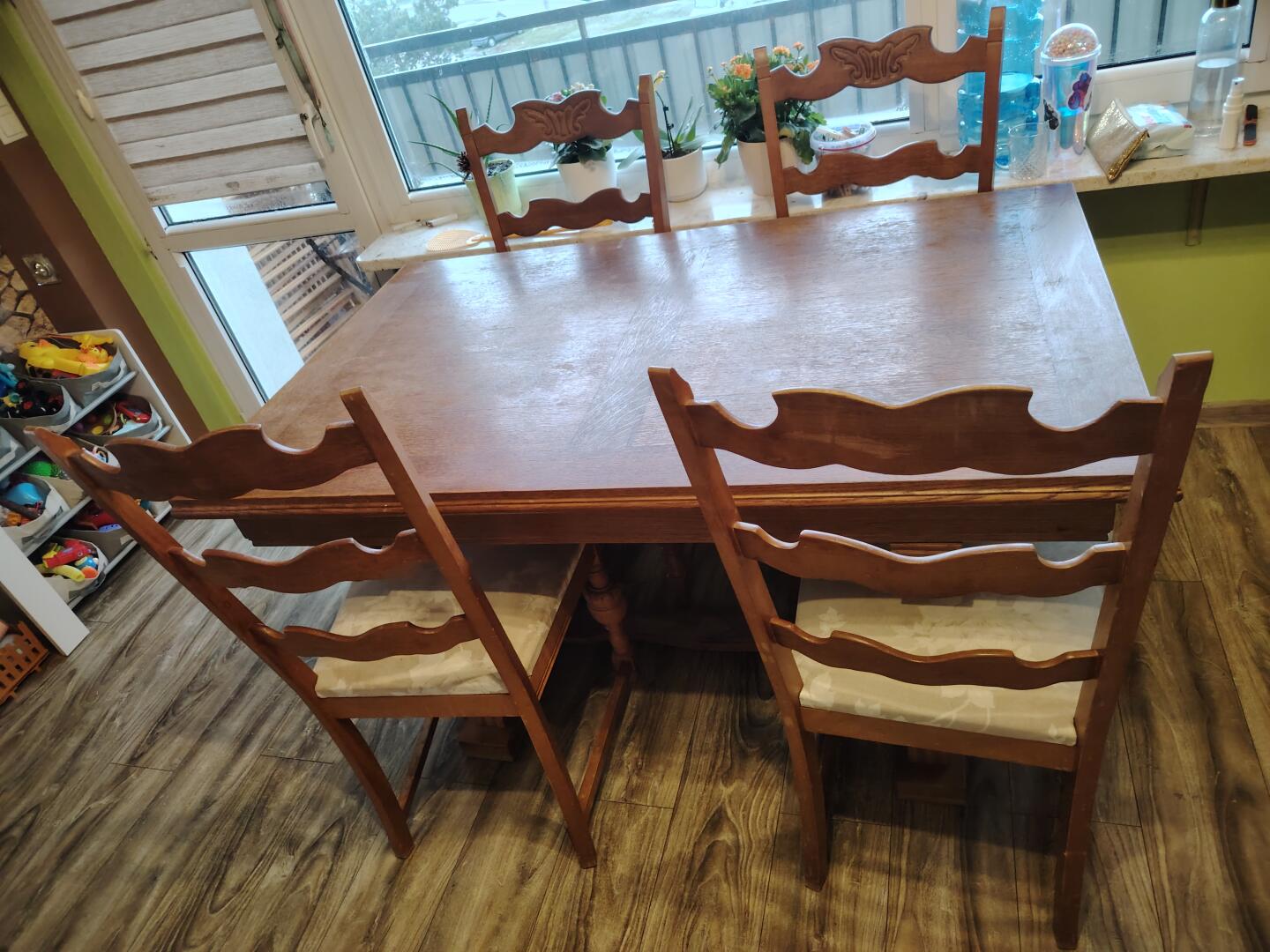 Proszę pisać SMS, Sprzedam stół o wym 140x86 cm dębowy plus 4 krzesła, Stół dodatkowo się rozkłada