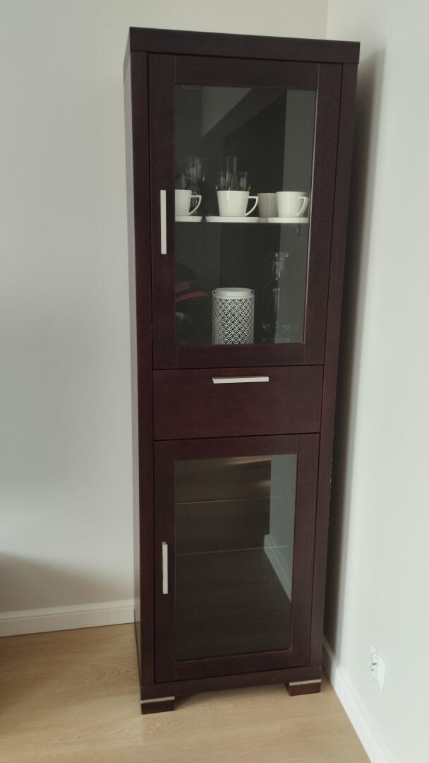 Witryna wysokość 184 cm, głębokość 38 cm, szerokość 55 cm.