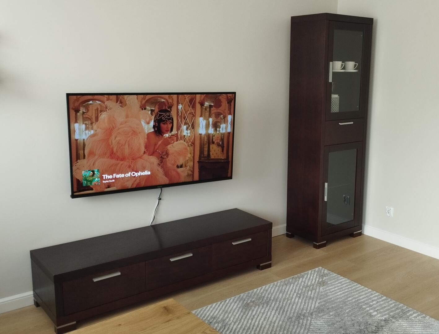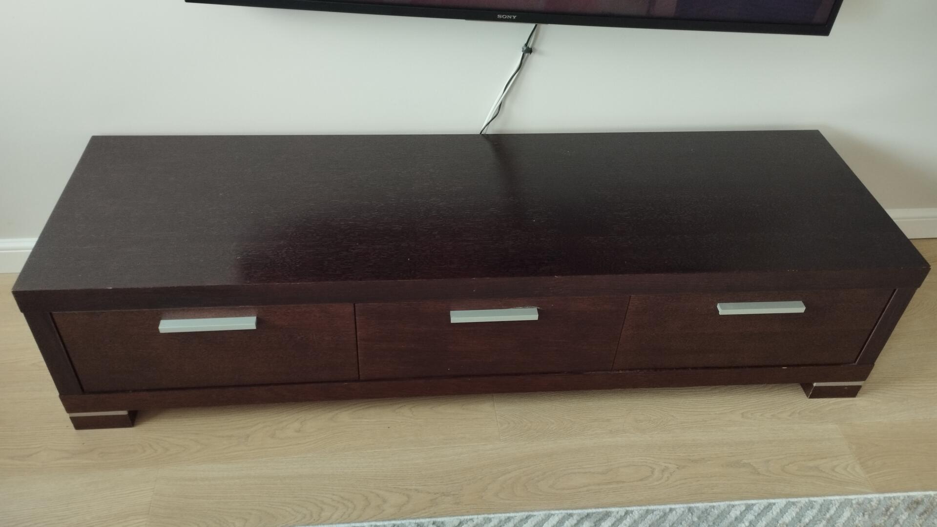 Komoda RTV długość 150 cm, głębokość 45 cm.