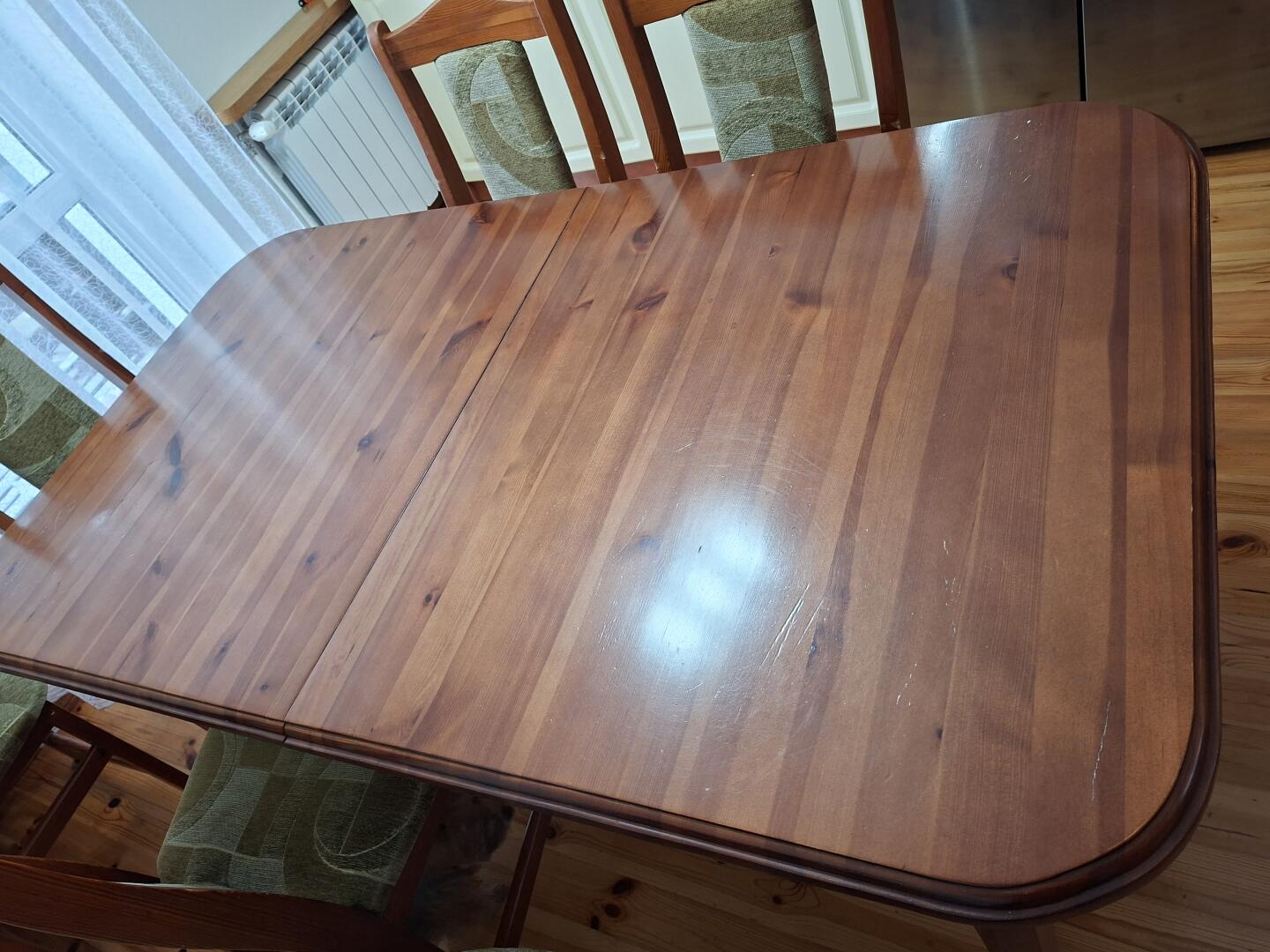 Sprzedam stół używany drewniany rozkładany 160x90 plus 48 cm dostawka chowana pod blatem.